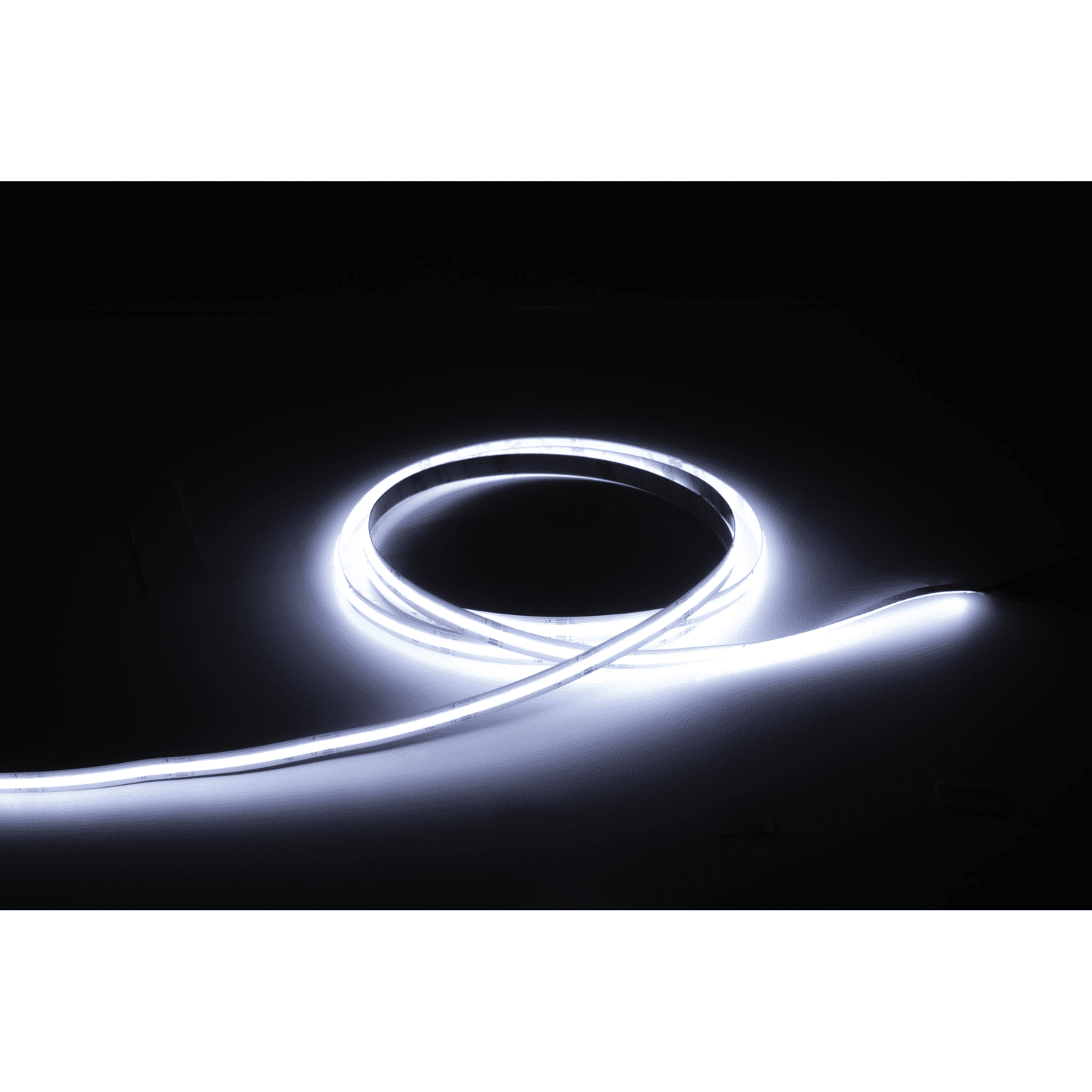 La Artecta Havana Halo Ribbon es una tira LED COB con clasificación IP20 para aplicaciones en entornos interiores secos. Proporciona una luz uniforme y suave gracias a la gran cantidad de LED por metro. Está disponible con LED RGB o RGBW; además, la parte trasera es autoadhesiva para facilitar su instalación en una superficie lisa y limpia. Lo más recomendable es utilizarla en un perfil de aluminio (con funda para proteger la tira LED del polvo y la humedad y para enfriarla por convección).