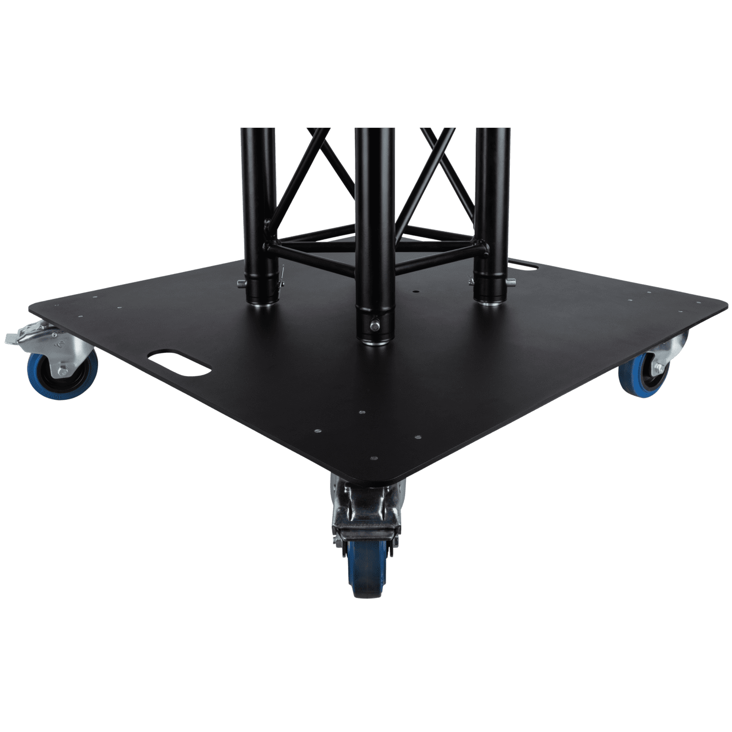 La solución Universal Truss Base Plate 750 con ruedas está diseñada para trusses escalonados, cuadrados y triangulares Pro-30. Fabricada en acero de 6 mm de grosor para un rendimiento resistente, los grabados láser en la parte inferior de la placa y los orificios avellanados M10 simplifican el montaje del truss. La placa es ideal para crear torres de iluminación para intercambios rápidos, mientras que las ruedas Penn Elcom facilitan el transporte de la placa.