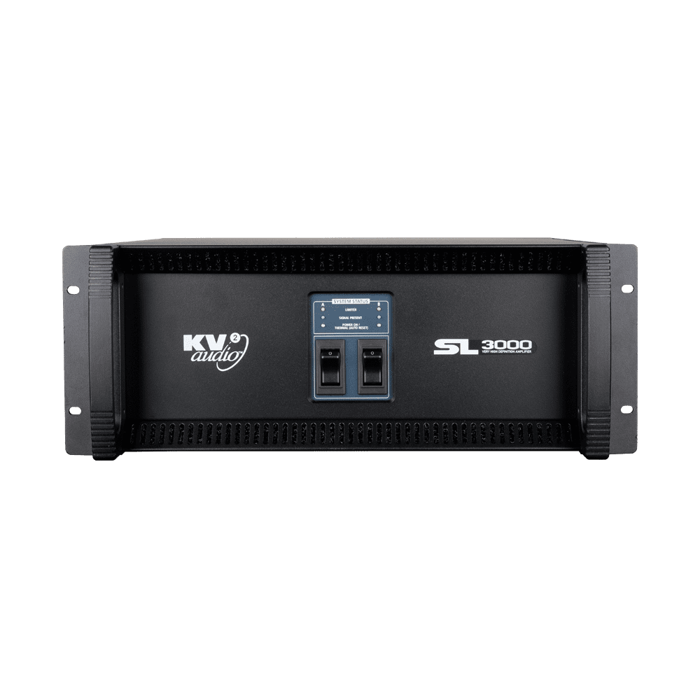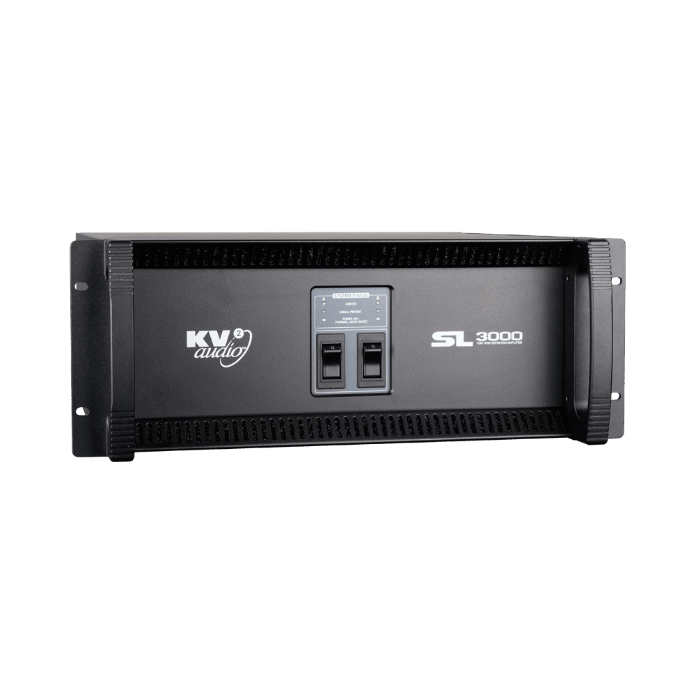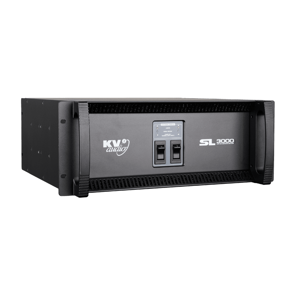 El amplificador SL3000 es un sistema de amplificación y control activo de tres vías diseñado específicamente para los sistemas de altavoces modulares de la serie KV2 Audio SL. El amplificador estéreo SL3000 impulsa y controla un SL412 por canal y sigue el enfoque holístico típico de KV2 de combinar componentes con electrónica de alta calidad para un verdadero rendimiento directo. El SL3000 utiliza una tecnología de modo conmutado de alta eficiencia de 1000 vatios, mejora de corriente, con un diseño de filtro activo lineal para la sección media baja, un amplificador de diseño de intermodulación baja push-pull de clase AB de 200 vatios para el rango medio y un diseño similar de 100 vatios para las frecuencias altas. Alberga alineación permanente, corrección de fase, amplificación y ecualización, además de proporcionar una salida cruzada de subwoofer externa para ejecutar más gabinetes de subwoofer si es necesario.