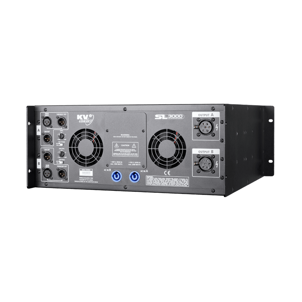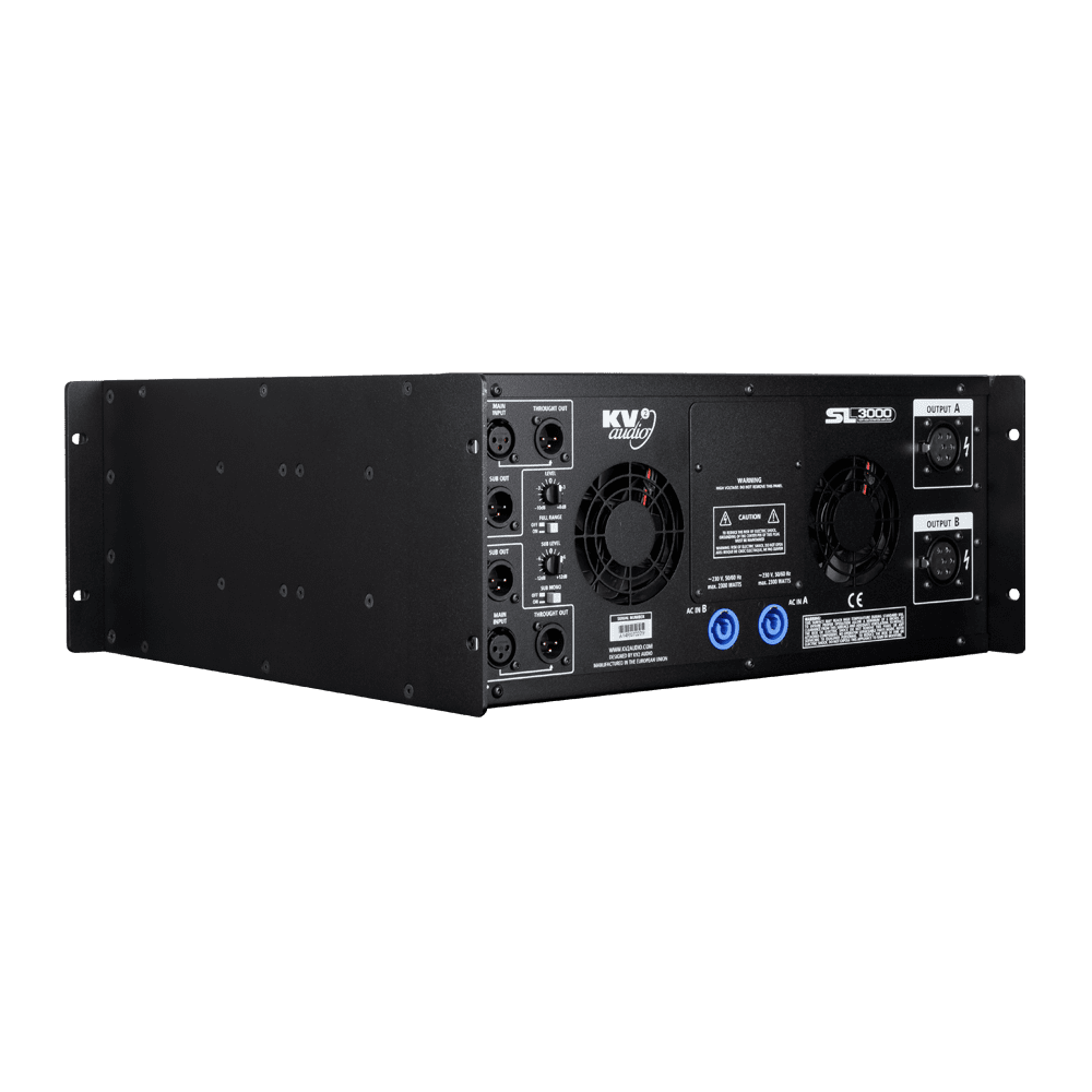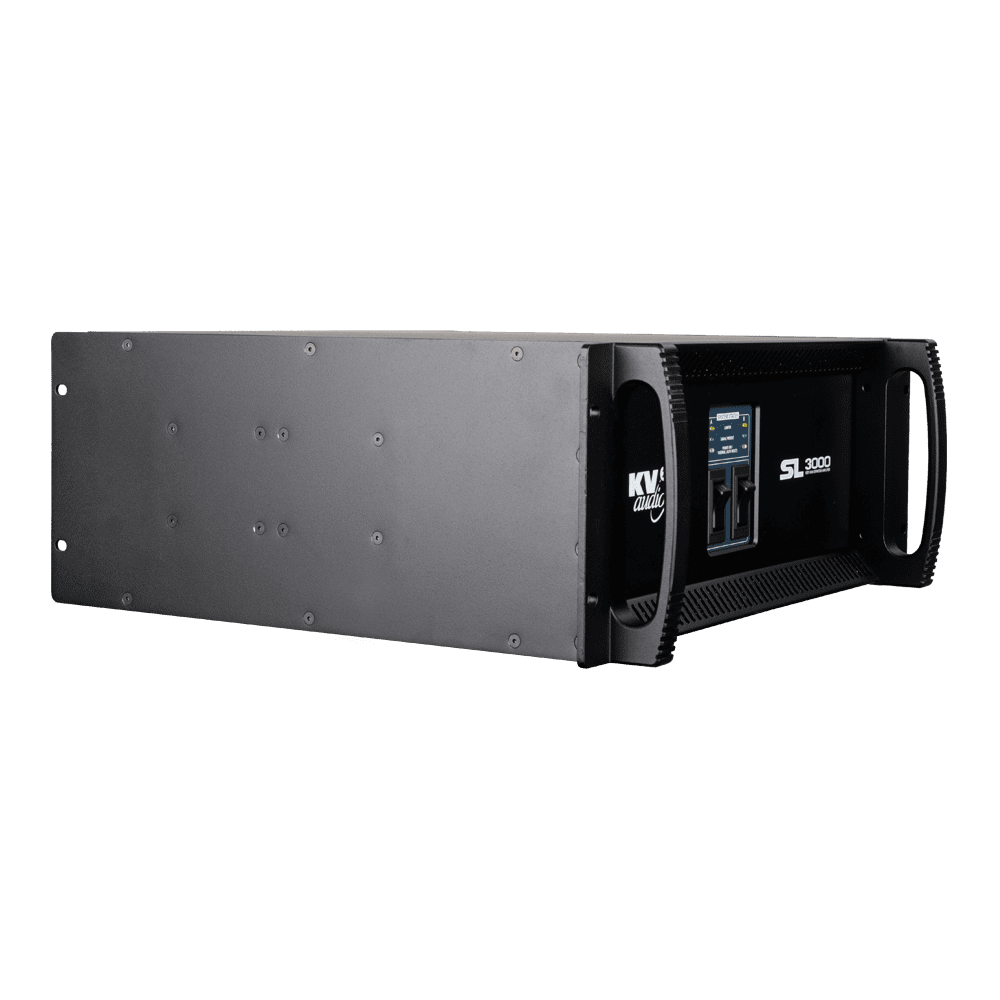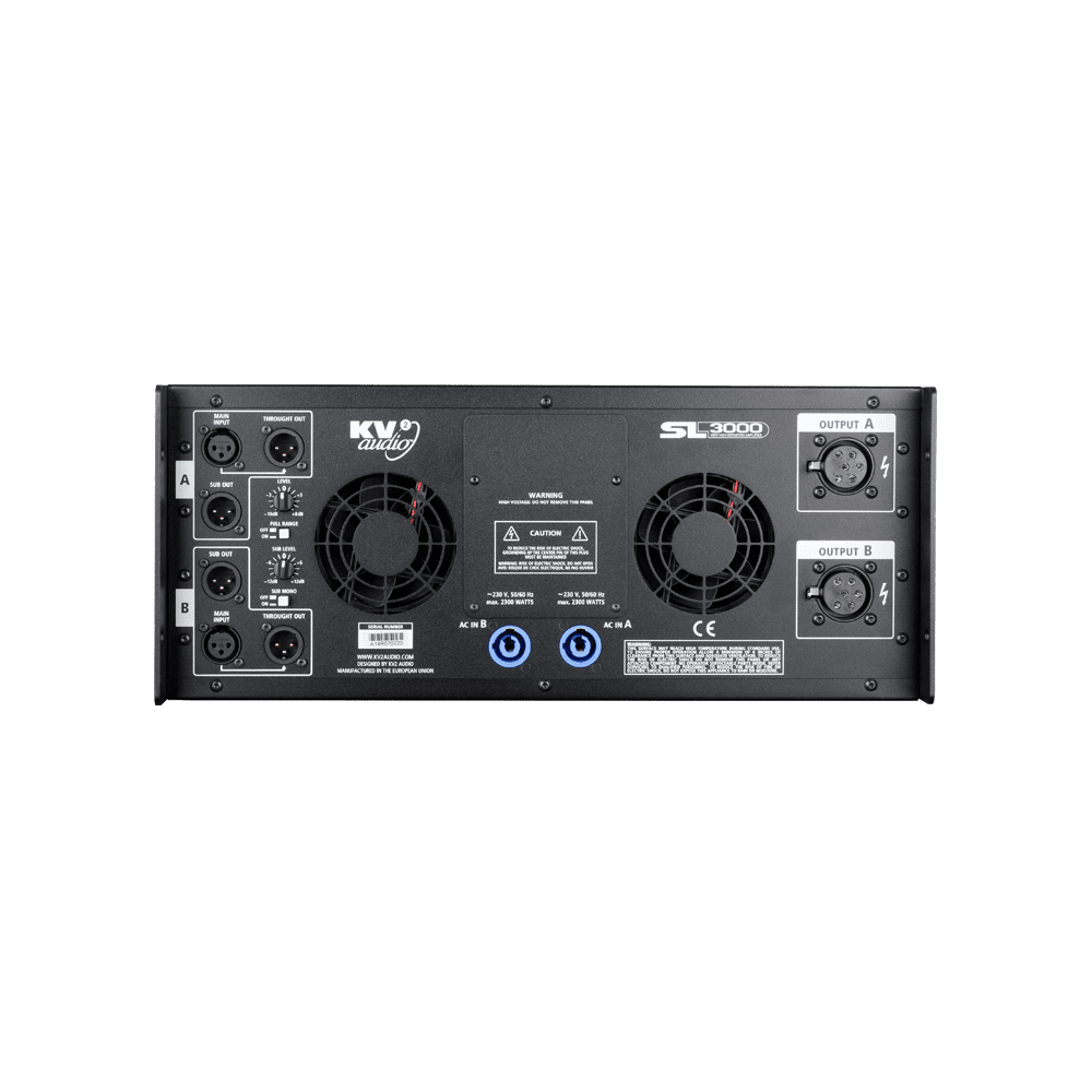 El amplificador SL3000 es un sistema de amplificación y control activo de tres vías diseñado específicamente para los sistemas de altavoces modulares de la serie KV2 Audio SL. El amplificador estéreo SL3000 impulsa y controla un SL412 por canal y sigue el enfoque holístico típico de KV2 de combinar componentes con electrónica de alta calidad para un verdadero rendimiento directo. El SL3000 utiliza una tecnología de modo conmutado de alta eficiencia de 1000 vatios, mejora de corriente, con un diseño de filtro activo lineal para la sección media baja, un amplificador de diseño de intermodulación baja push-pull de clase AB de 200 vatios para el rango medio y un diseño similar de 100 vatios para las frecuencias altas. Alberga alineación permanente, corrección de fase, amplificación y ecualización, además de proporcionar una salida cruzada de subwoofer externa para ejecutar más gabinetes de subwoofer si es necesario.