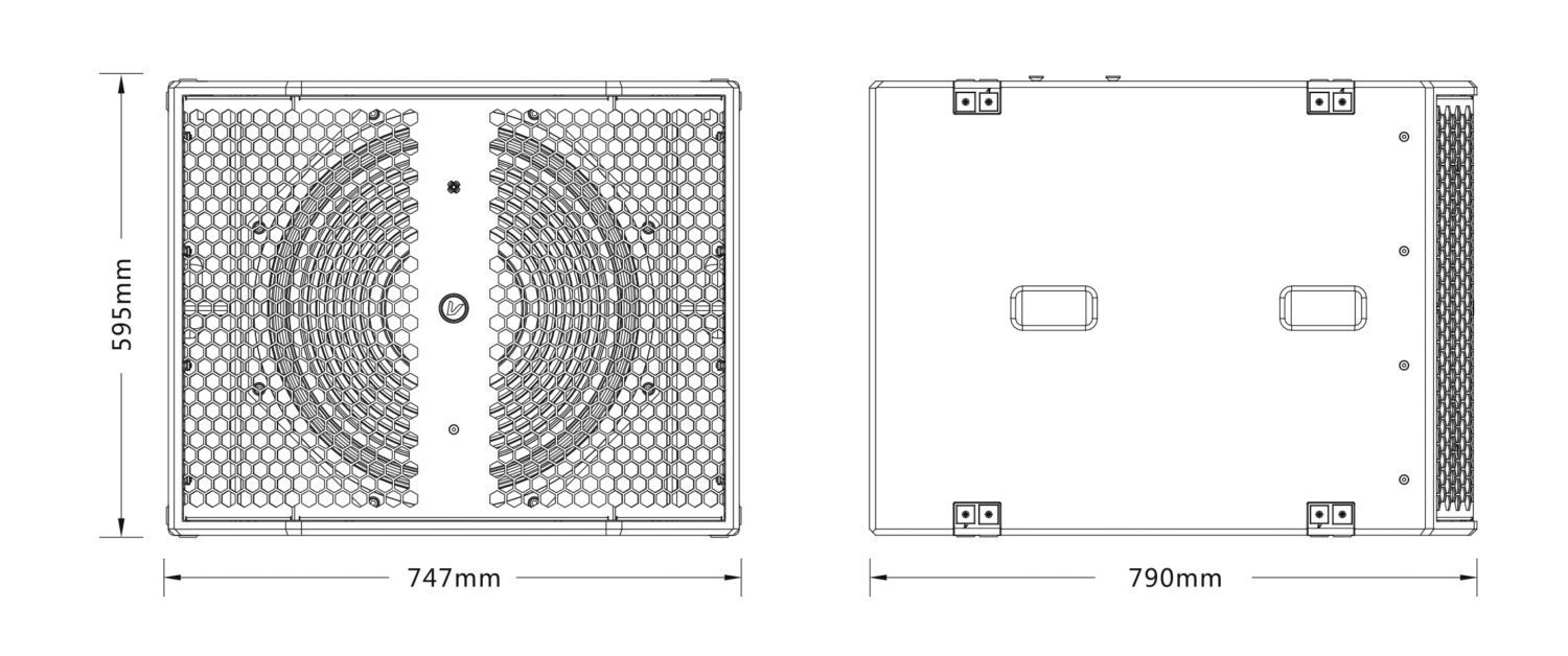 Diseño de acústica científica: Super Monster tiene dos metros de altura después de apilarlo. La pared de graves está formada por un doble bajo medio de 12″ y un doble ultrabajo de 21″ para rodear a las personas. La bocina de agudos de Super Monster tiene un diseño de bocina asimétrica para el campo cercano medio que el eje vertical superior es de 50°, el eje vertical inferior es de 90° y el ángulo horizontal es de 70°. Este diseño particular es una buena solución a los problemas de tecnología de cobertura en el campo cercano y el campo lejano que es la máxima garantía de la cobertura del campo de sonido.