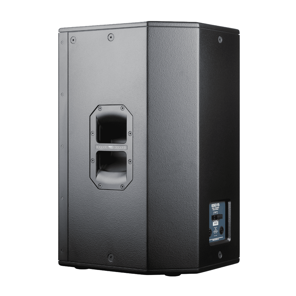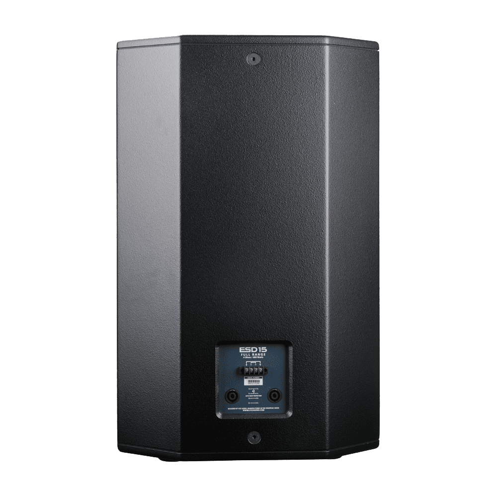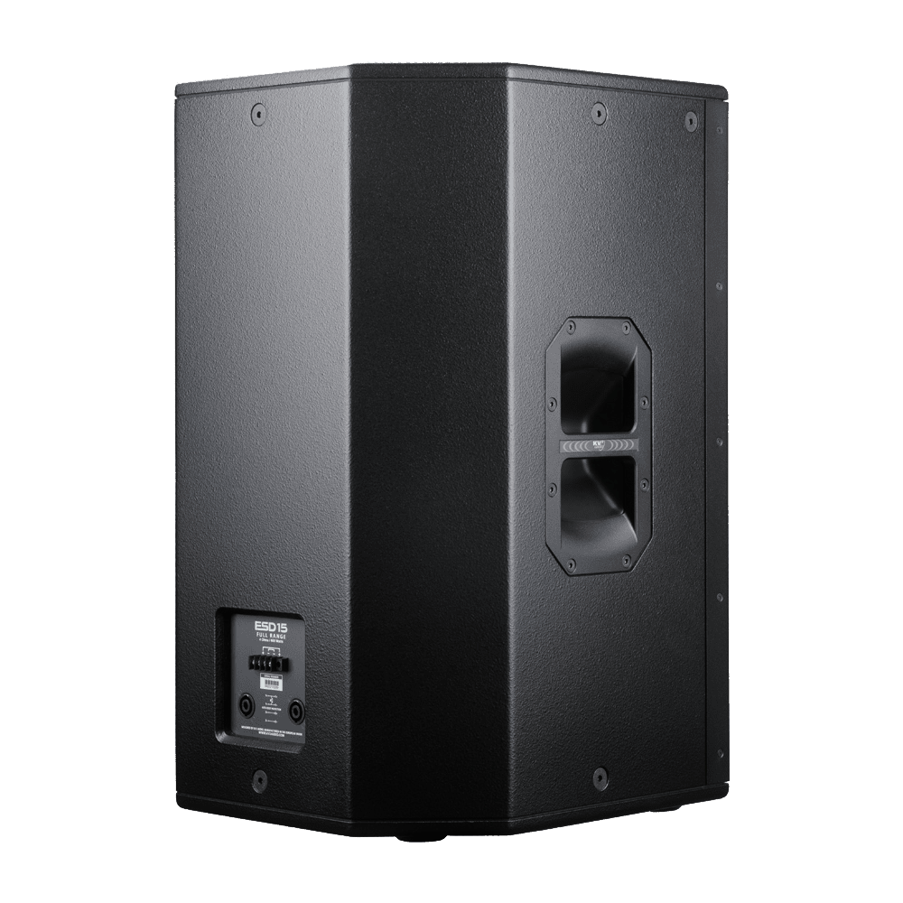 El nuevo ESD15 incorpora un transductor coaxial único de 15″ con un controlador de compresión de neodimio de nitruro de titanio de 1,75″ en una bocina de amplia dispersión de 80 x 60 grados. Mientras que la mayoría de los altavoces coaxiales intentarán cubrir la respuesta de frecuencia completa, el controlador coaxial del ESD15 solo cubre los graves y los agudos, dejando los importantes medios de rango a un altavoz de neodimio de 6″ montado en una bocina grande de 80 x 60 grados. Esto resuelve el problema del controlador de 15″ que intenta y no puede reproducir el rango medio, un problema común con los diseños coaxiales convencionales. El diseño exclusivo del ESD15 proporciona una reproducción de rango completo extremadamente plana desde un paquete compacto pero potente que supera en rendimiento a altavoces que duplican su tamaño, peso y precio.