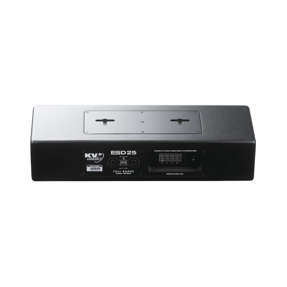 El ESD25 es un altavoz pasivo compacto de perfil bajo y rango completo de 2 vías de muy alta calidad con mayor extensión de graves más bajos que el ESD5 más pequeño. Su diseño de controlador opuesto ayuda con el control del patrón de las frecuencias medias bajas, reduciendo los reflejos en espacios reverberantes y mejorando la inteligibilidad. Al ofrecer una claridad excepcional para la reproducción de discursos y programas, el ESD25 es ideal para aplicaciones de relleno debajo de balcones o frente al escenario en teatros y espacios de artes escénicas donde se requiere una suplementación transparente del sistema principal. Al igual que el ya aclamado ESD5, el ESD25 tiene una forma que encaja discretamente en estas aplicaciones y viene con su soporte integral para una instalación rápida.