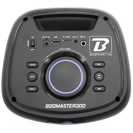 El sistema de PA portátil BOOMaster 300 de BoomTone DJ cuenta con dos altavoces de 6,5 pulgadas con una potencia total de 250 W, iluminación dinámica, receptor Bluetooth para streaming, batería recargable, reproductor multimedia USB/SD y radio FM con pantalla LED digital. Además