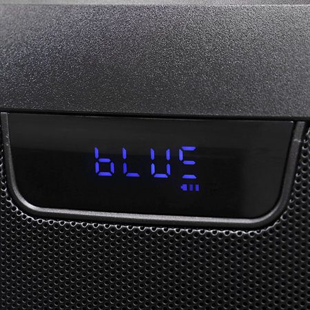 El volumen del micrófono y de la música se puede ajustar independientemente desde el panel superior del altavoz portátil. El control remoto inalámbrico incluido con el Traveler 300 administra todos los controles de audio, incluidas las luces que rodean el woofer. Se pueden activar varios modos de proyección para que las luces se apaguen lentamente o bailen al ritmo de la música. Si se cansa de su selección de música, un receptor de radio FM incorporado le permite transmitir melodías.
