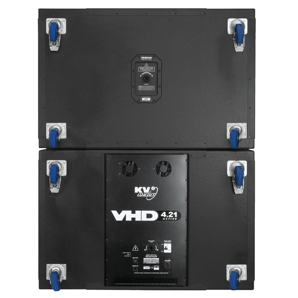 ¿Qué es el poder sin control? Al desarrollar una de las soluciones de subwoofer más potentes del mundo actual, nuestro ya exitoso subwoofer VHD2.21 de 2×21″ ha evolucionado para incorporar un nuevo y revolucionario diseño de amplificador de subwoofer, exclusivo del KV2 y que presenta entrega de corriente ultra alta, potencia inmensa y control excepcional, junto con una fuente de alimentación de bajo consumo de ‘eficiencia ecológica’ líder en su clase. Al albergar dos woofers de 21″ de gran formato recientemente desarrollados, VHD4.21 Active puede alimentar un VHD4.21 pasivo adicional y ofrecer hasta 14.000 vatios de potencia máxima mientras se conecta a un enchufe de pared estándar de 16 A. El VHD4.21 es un producto realmente asombroso y demuestra el pináculo de las tecnologías pioneras de subwoofers de KV2. También hay disponible una versión volable: módulo de graves pasivo activo VHD4.21R (KVV 987 480 / KVV 987 481) con fijaciones y requisitos adicionales para el Flybar VHD4.21 (KVV 987 398).