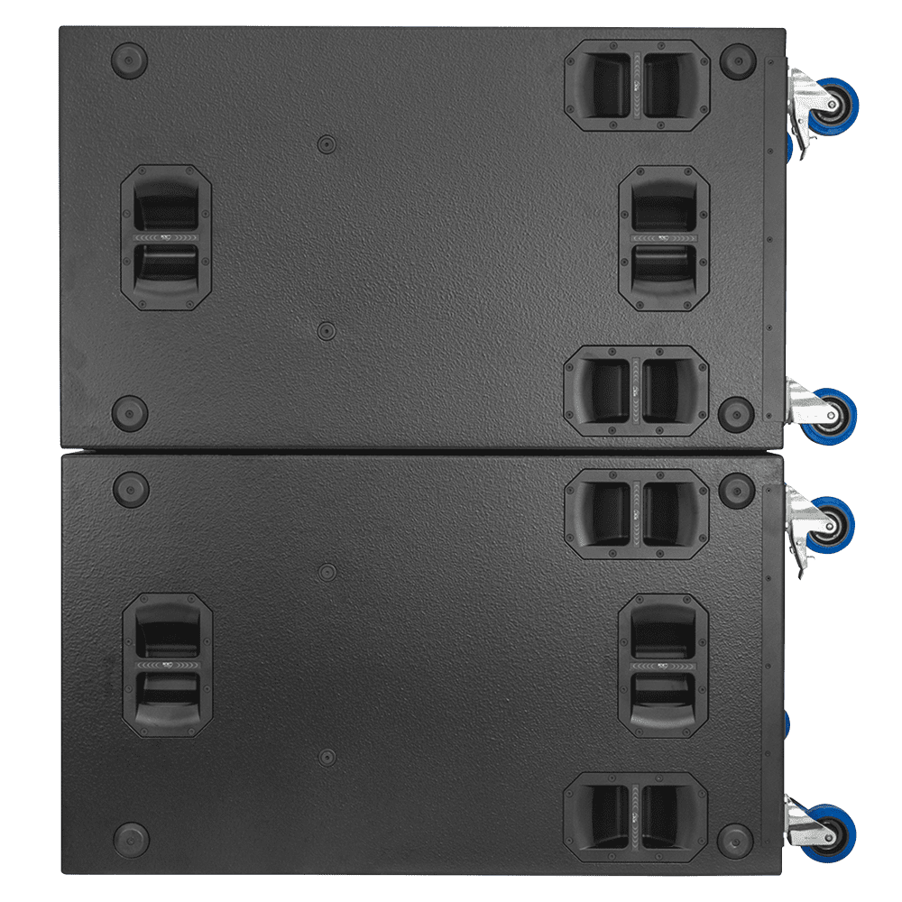 • Cada caja contiene dos woofers de gran formato de 21″ diseñados a medida.
