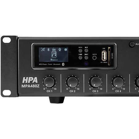 El HPA MPA480Z ofrece una potente salida de amplificador de 480 W RMS para sistemas de megafonía e instalaciones en línea de 100 V.