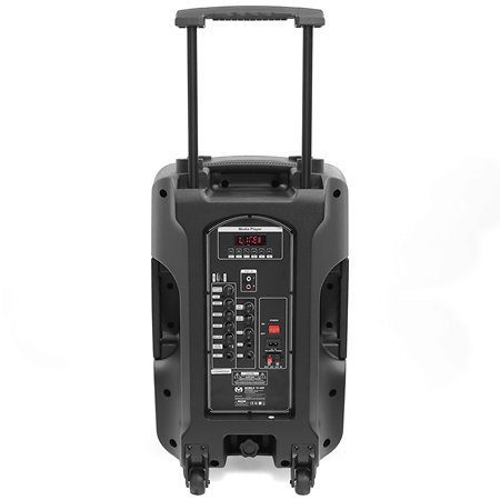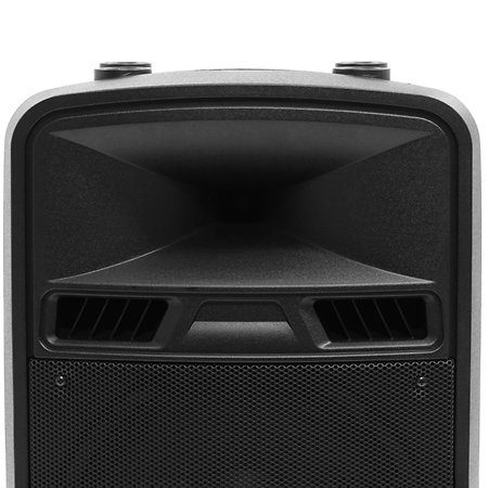 Perfecto para veladas de karaoke, entretenimiento en bares, restaurantes o al aire libre, este sistema de sonido portátil puede funcionar hasta 6 horas sin energía gracias a su batería recargable incluida. Las conexiones disponibles en el panel trasero incluyen dos entradas de micrófono con conector de 1/4″, una entrada/salida auxiliar RCA y una entrada de instrumento con conector de 1/4″.