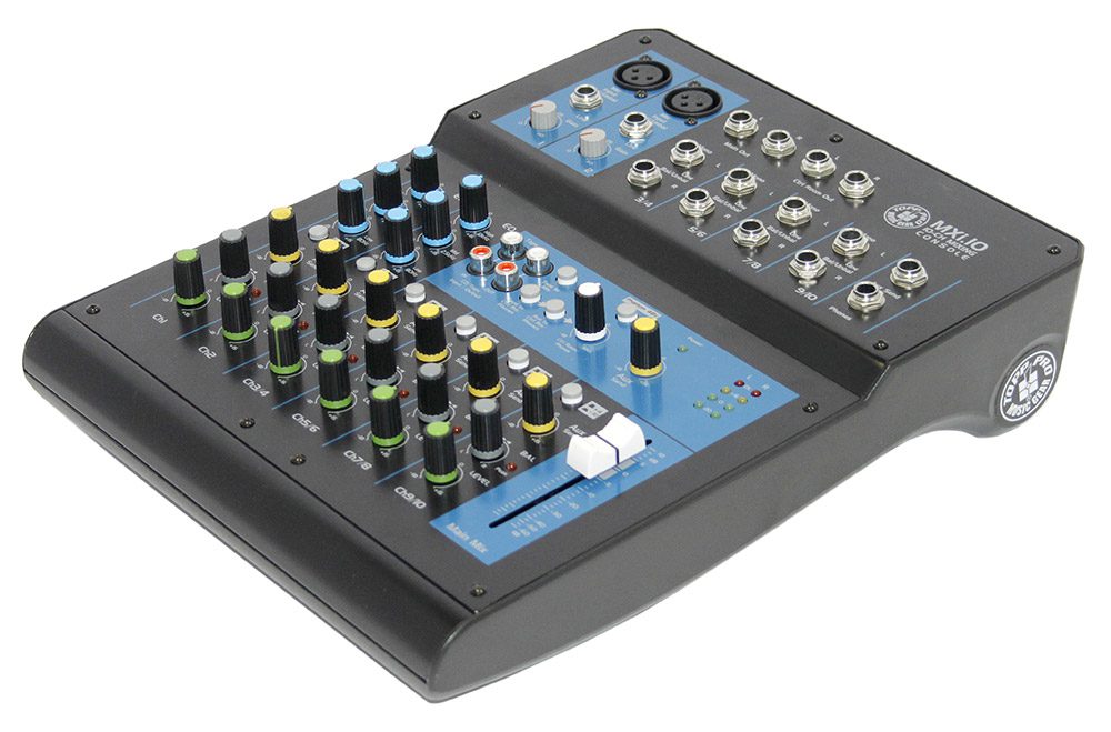La MXi.10 es la mezcladora ultra-compacta de 10 canales para aplicaciones mínimas pero profesionales. Perfecta para el podcaster que usa 2-3 micrófonos, el presentador que necesita mezclar un micrófono con música de fondo, o como pequeña consola de monitor.
