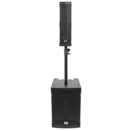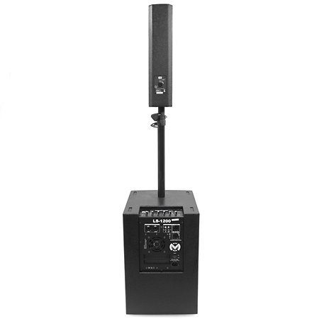 Sistema de PA amplificado compuesto por dos altavoces Mac Mah LS-1200 con 2400 W de potencia máxima, receptor Bluetooth, entradas de micrófono e instrumento, salida de línea XLR y mezclador integrado. Instalación rápida para un sonido potente, independientemente de la acústica de la sala.