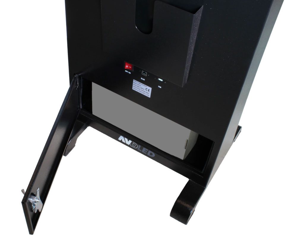 El sistema “todo en uno” del AVDATRIL dispone de maleta de transporte especial (flightcase) y permite un mantenimiento frontal rápido y sencillo. Su estructura modular y peso optimizado facilitan el montaje y desmontaje, reduciendo los tiempos de configuración previos al evento. La opción de diseño curvo mejora la experiencia visual, mientras que la integración táctil opcional (personalizable) añade interactividad a las presentaciones.
