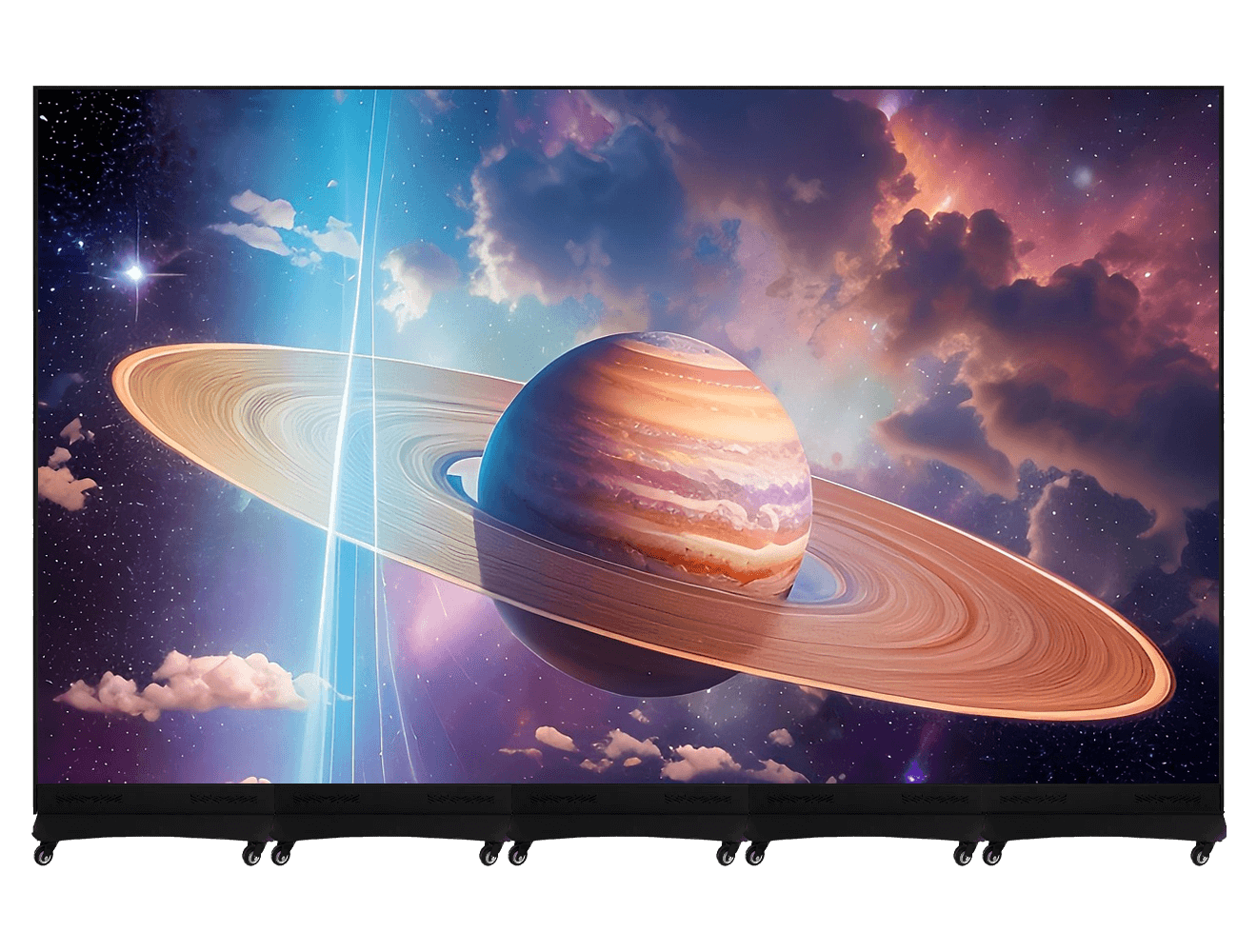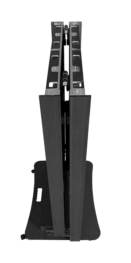 Puede utilizarse como unidad independiente o unirse a otras para formar pantallas más grandes. Compatible con splicing sin fisuras en diseños creativos (formas geométricas, pantallas curvas). Tres unidades permiten crear una pantalla de 163″ formato 16:9. El plegado vertical u horizontal facilita el transporte y la instalación en espacios reducidos. Estructura reforzada para uso profesional intensivo.
