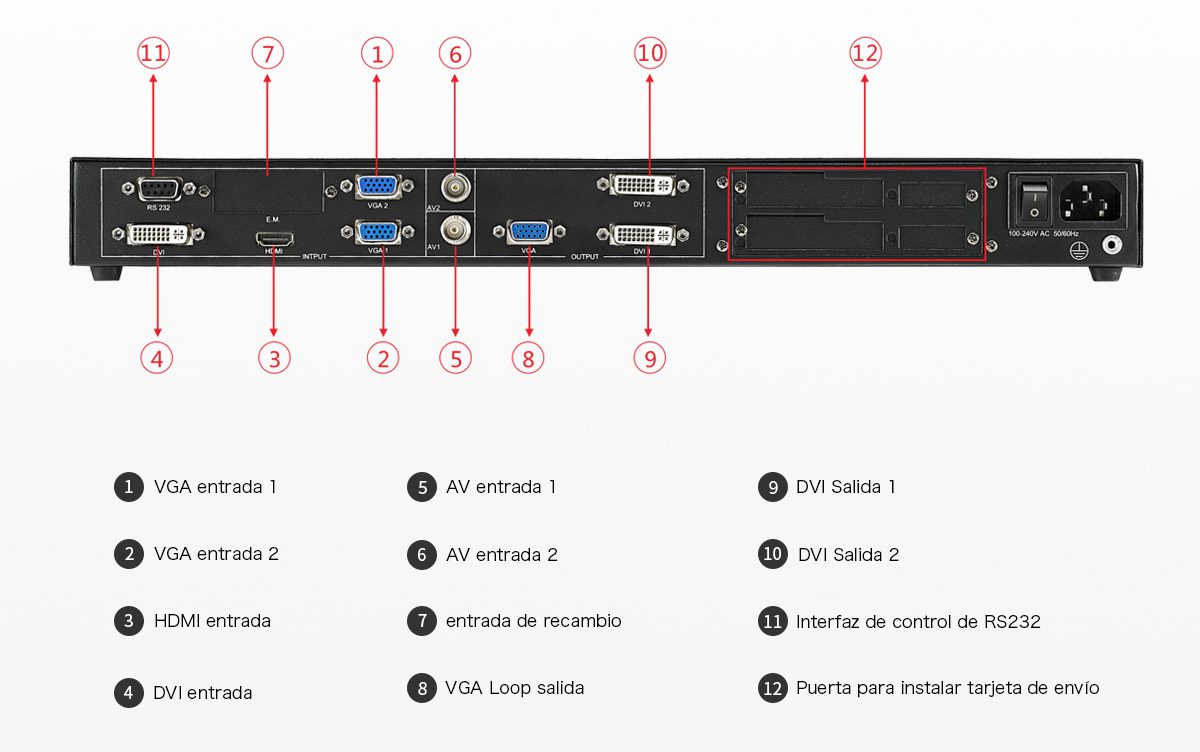 Puertos de entrada de video completos, incluidos 2 VGA, 1 DVI (se pueden expandir a 2 entradas DVI al mismo tiempo), 1 xHDMI, 2xVideo (PAL / NTSC), 1 xSDI (opcional), para admitir entradas de señal Full HD, y Se puede conectar con muchos tipos de dispositivos de video. Soporte de conmutación sin fisuras entre diferentes señales de entrada y función PIP. Toda la unidad con estructura de hardware puro, estable y fiable. Actualización y control de red, conveniente para soporte técnico y mantenimiento postventa.