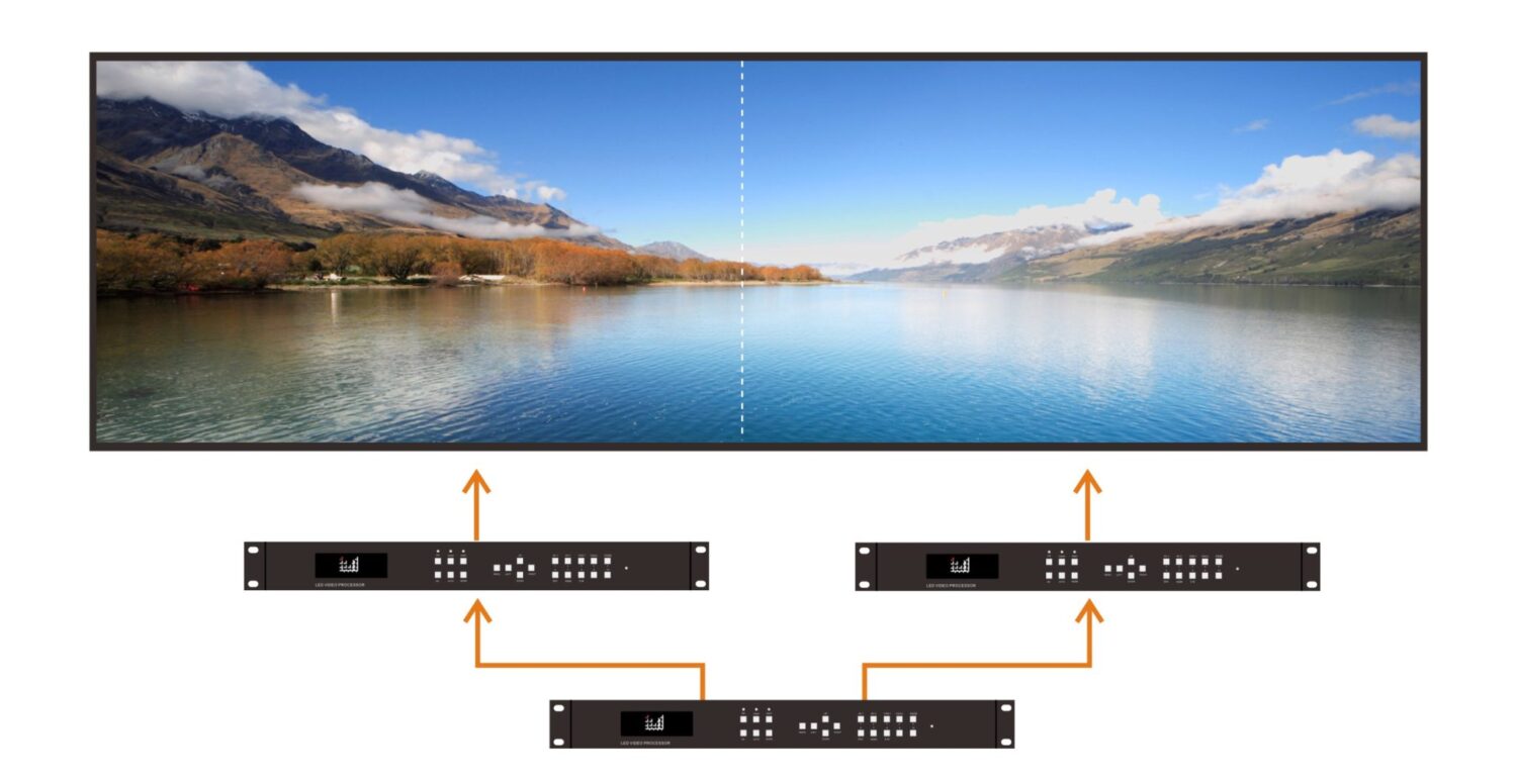 La tecnología de escalado de imagen avanzada admite una resolución de 10 salidas, la unidad única admite una resolución máxima de 2304x 1152.2560×816, 1920x 1200, 1536x 1536, la tasa de actualización máxima puede ser 120Hz y puede escalar la imagen de salida píxel a píxel de acuerdo con el tamaño real de La pantalla LED. La tecnología de empalme sin problemas de la pantalla LED de tamaño súper intelectual intelectualizado, los usuarios necesitan realizar algunas configuraciones simples para lograr el envasado de imágenes de múltiples tarjetas de envío, puede admitir un máximo de 24576×24576 cabinet de pantalla LED de matriz de puntos de píxeles; Una técnica única de seguimiento sincrónico para asegurar la fluidez de la imagen en movimiento a alta velocidad, sin desplazamiento o cola.