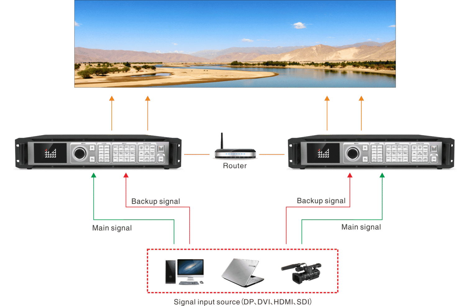 La capacidad de la serie MAG.W4000.2DH es varias veces superior a la del procesador de video normal, es compatible con la gestión de EDID y la resolución de salida personalizada, la salida de un solo procesador puede tener un ancho máximo de 8192 píxeles, una frecuencia de actualización de hasta 120Hz, una mejor utilización de la capacidad de carga. También proporciona varias opciones de salida regulares para escalar de acuerdo con el tamaño real de la pantalla LED.