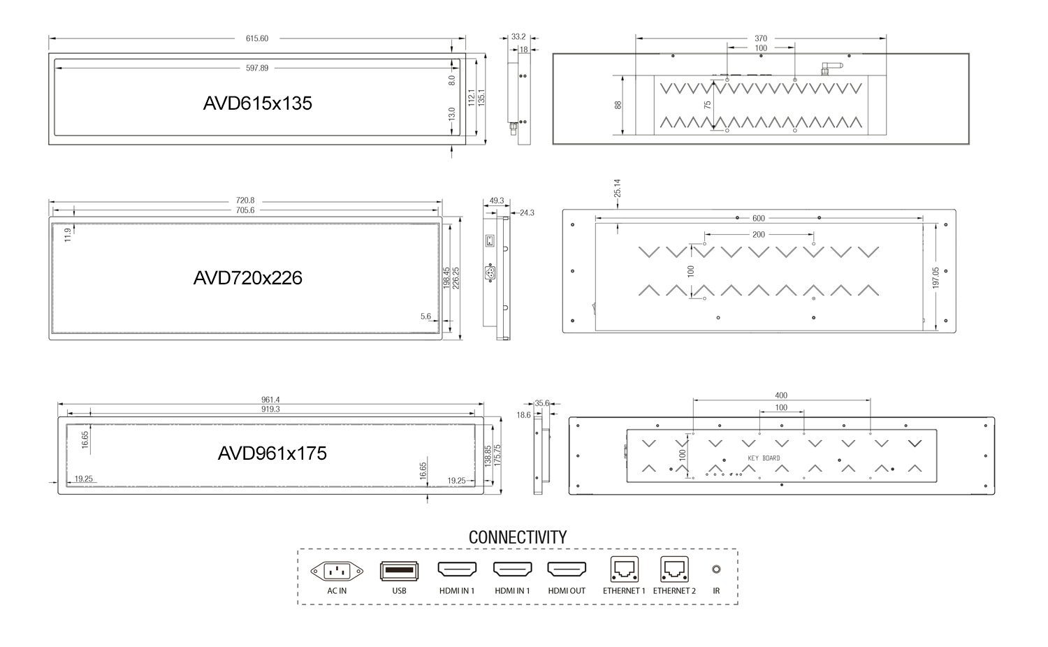 | Model | AVDV615x135  | AVDV720x226  | AVDV961x175  | AVDV927x283  | ||||