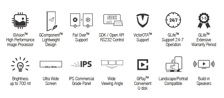 | Display Size | 23 inch | 35 inch | 38 inch | 47 inch | |