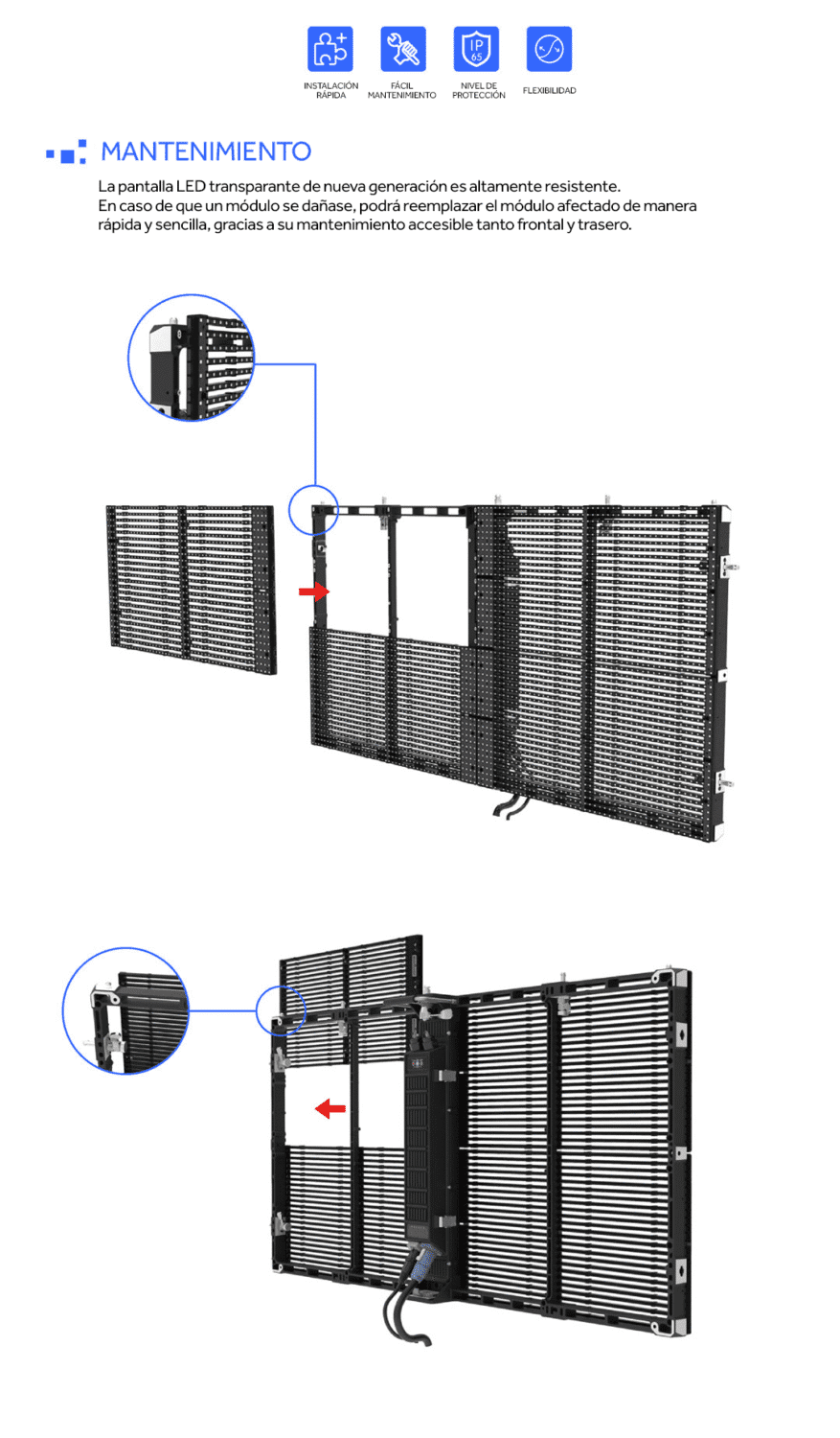 La única cabinet transparente del mercado con una estructura de PCB exclusiva con un grosor de solo 22 mm y un grado de transparencia superior al 75%. Su diseño especial creado para ocultar la fuente de alimentación y el cableado, hacen de esta serie la opción ideal para instalaciones de diseño con un nivel superior. Creado para un fácil mantenimiento con componentes de alta calidad.
