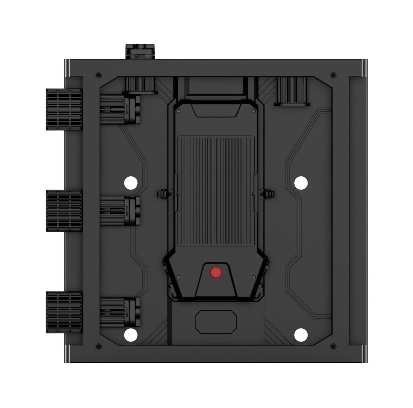Su estructura ligera a la vez que ultra resistente le permite crear formas de cabinets hasta ahora inimaginables, puede hacer cabinets de hasta 10 metros de altura, puede alternar módulos creando huecos en la pantalla para meter cabezas móviles, por ejemplo, puede crear cabinets curvas o curvar zonas (15º) de la pantalla y puede hacer la pantalla en forma de letras, totems, o la forma que usted prefiera.