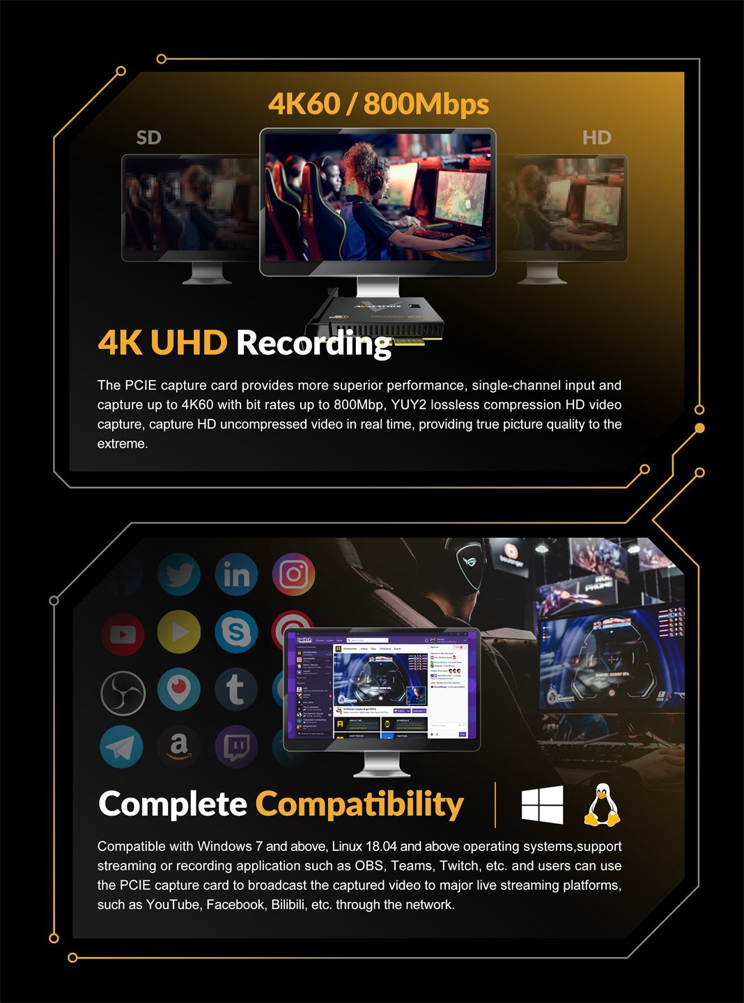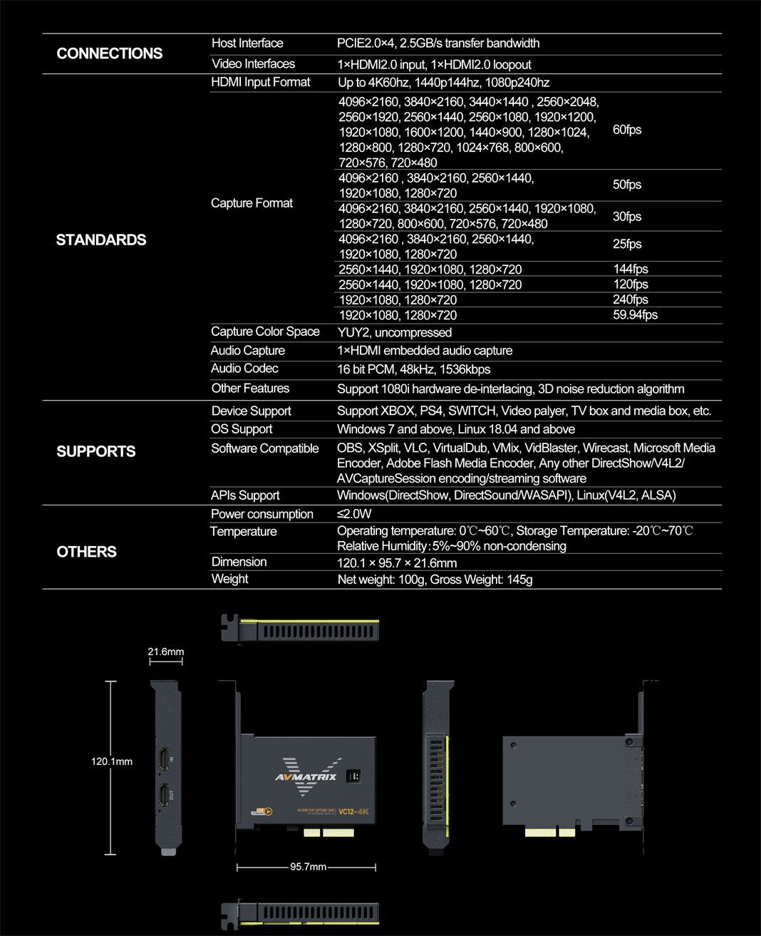 • Admite entrada y captura de hasta 4K60 con velocidades de bits de hasta 800 Mbps