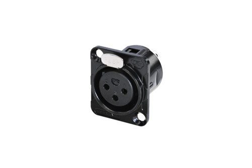 Receptáculo XLR hembra de 3 polos con brida de tamaño D, copas de soldadura y protección IP65, Carcasa cromada y contactos estañados.