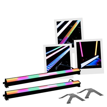 Suministrado con soportes omega, el dispositivo se puede instalar rápidamente en una estructura o tótem para agregar dramatismo a una sesión de DJ, un desfile de moda o una conferencia.