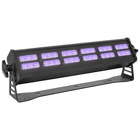 Esta barra LED es ideal para proyección directa gracias a sus 36 potentes LED UV de 5 W que emiten una longitud de onda de 395 nm. Con un ángulo de haz de 60°, la MaxBar 180 UV puede cubrir un amplio espacio con un brillo UV intenso y homogéneo.