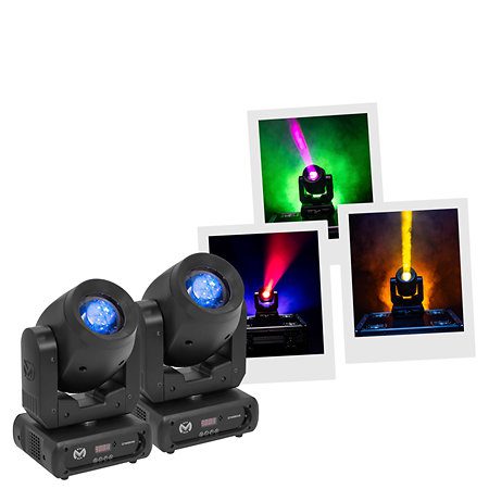 Con el pack Mac Mah IZY 80 Spot, tus fiestas solo tendrán una preocupación. Cada lira está equipada con un LED blanco de 80 W, para una fuente de luz vibrante que se mantiene fiel durante más de 50.000 horas (sí, incluso después de esa fiesta interminable en la que todos siguen preguntando). La rueda de color cuenta con 7 tonos y un efecto arcoíris, mientras que la rueda de gobos te permite controlar 5 patrones giratorios. Tú tienes el control, la máquina te sigue, ya sea que uses DMX, modo maestro-esclavo o el que reacciona al sonido.