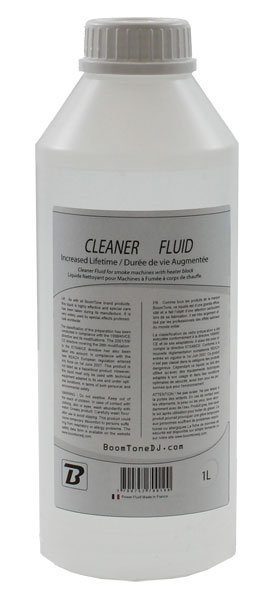 Botella de 1 litro de líquido limpiador BoomToneDJ para la limpieza de máquinas de humo. Apto para componentes de acceso interno y externo, prolonga la vida útil de la máquina.
