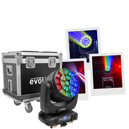 Cabeza móvil híbrida evolite 3 en 1 Beam / Spot / Wash con lámpara Osram de 382 W (18R), entregada en un maletín de una unidad, el proyector inteligente capaz de adaptarse a todas las limitaciones.