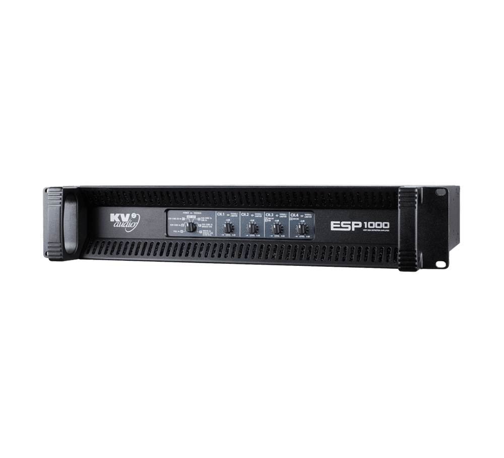 The ESP1000 is a four channel rack mountable power amplifier specifically designed for optimised performance with KV2 Audio’s ESD Cube / ESD1.10 subwoofer system. The unit contains four separate 250 watt amplifiers, two independent power supplies (two channels running off each power supply), four signal paths, inputs and outputs as well as limiting and equalization for given passive loudspeaker / subwoofers. Six independent configurations are selectable and it can be used to power any ESD units and other ranges of passive loudspeakers.
