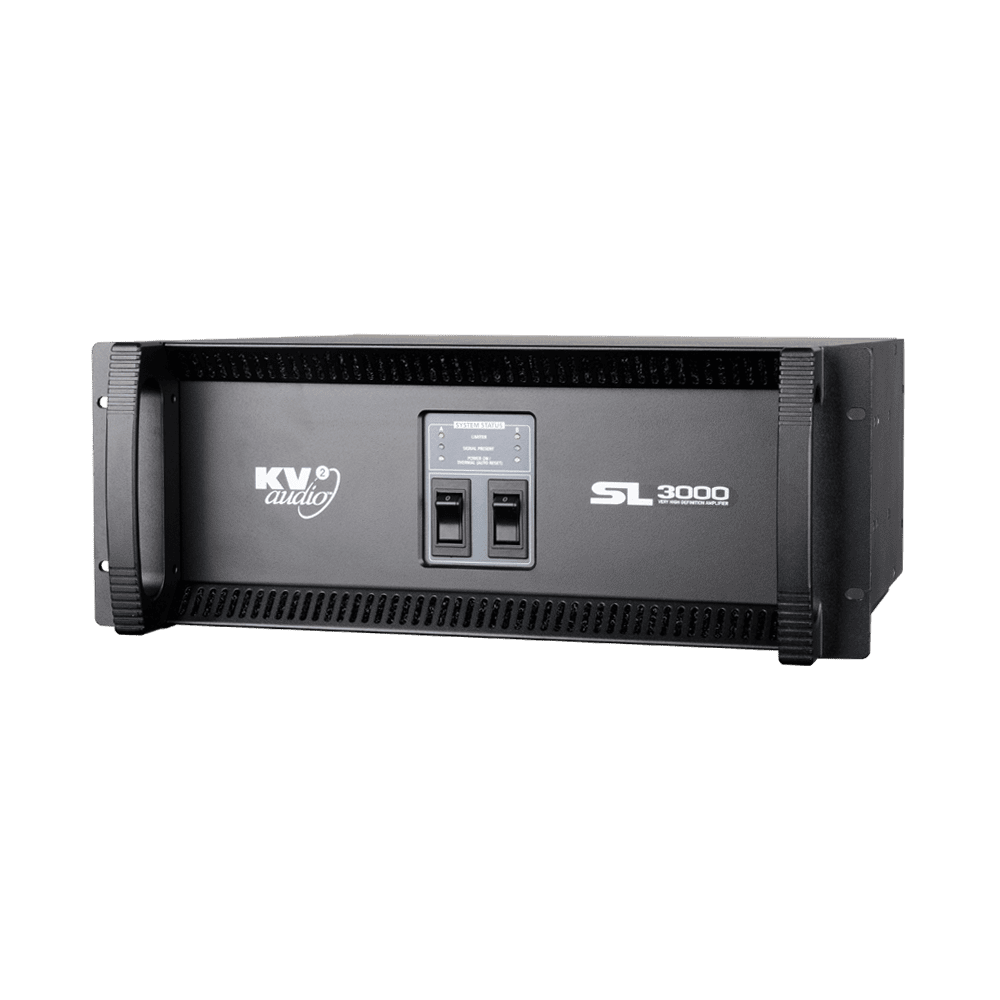 The SL3000 Amplifier is a three-way, active control and amplification system specifically designed for the KV2 Audio SL Series modular loudspeaker systems. The SL3000 Stereo Amplifier drives and controls one SL412 per channel and follows the typical KV2 holistic approach of matching components with high quality electronics for true direct performance. The SL3000 utilises a 1000-watt high efficiency – current enhancing, switch – mode technology, with linear active filter design for the low mid-section, a 200-watt class AB push pull low intermodulation design amplifier for the mid-range and a similar 100-watt design for the high frequencies. It houses all time alignment, phase correction, amplification and equalisation as well as providing an external subwoofer crossover output to run further subwoofer cabinets if needed.