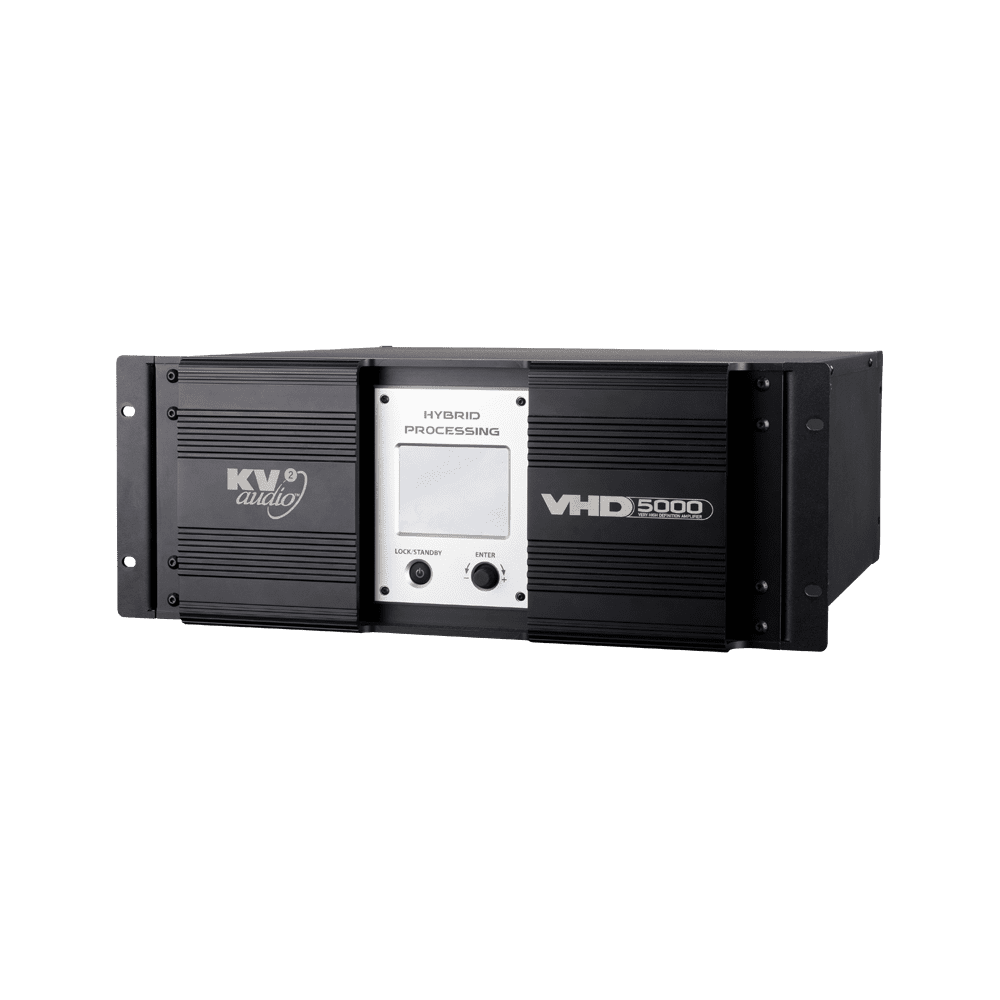 Active control and amplification unit specifically designed in conjunction with VHD5000S for powering the VHD5 loudspeaker system. The VHD5000 is equipped with many features for easy large scale speaker system use. It features all signal processing, crossover and speaker system protection. All signal processing is executed with KV2 Audio Super Audio Analog circuitry and utilize KV2’s industry leading 20MHz sampling for on board time alignment and phase correction for maximum audio quality. The VHD5000 is equipped with multiple delay lines, wideband delay line for VHD5 system delay, ll output delay and two low frequency delay lines for subwoofers.