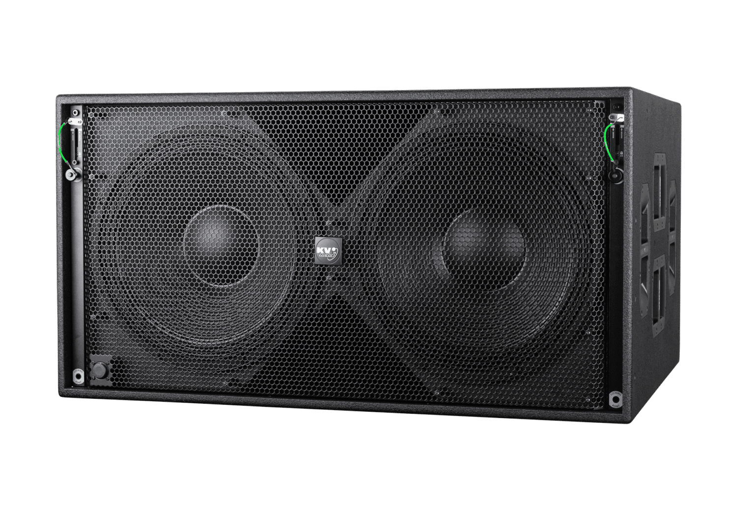 What is Power without Control. In developing one of the most powerful subwoofer solutions in the world today, our already successful VHD2.21 2×21″ subwoofer has evolved to incorporate a revolutionary new Subwoofer Amplifier design, unique to KV2 and featuring Ultra High Current delivery, Immense Power, Exceptional Control, coupled with a class leading ‘Green Efficiency’ low consumption power supply. Housing two newly developed large format 21″ Woofers the VHD4.21 Active can power an additional Passive VHD4.21 and deliver up to 14,000 Watts of peak power whilst being plugged in to a standard 16A wall socket. The VHD4.21 is a truly Amazing product and demonstrates the Pinnacle of KV2’s Pioneering Subwoofer technologies. There is also a flyable version available – VHD4.21R Active Passive Bass Module (KVV 987 480 / KVV 987 481) with additional fixings and requirements for the VHD4.21 Flybar (KVV 987 398).